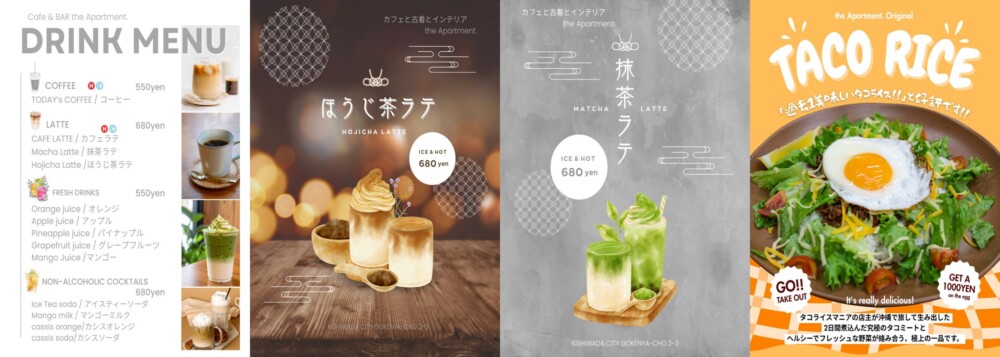 当日は、ほうじ茶ラテや抹茶ラテといった美味しいカフェドリンクやアパートメントの大人気メニューでもある