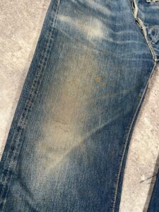 長年の着用と洗いによって現れたフェード感、自然な日焼け、色落ち。