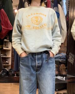 フロントには「CAZENOVIA JR. COLLEGE」のカレッジプリントが入り、アメリカ古着らしい王道の雰囲気を持った一着です。