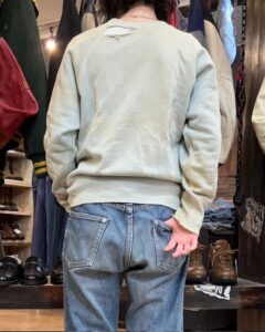 このスウェットの最大の魅力は、やはり経年変化が生み出した表情。