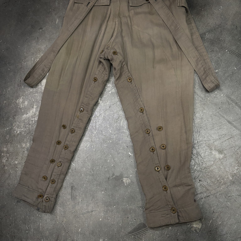 大戦当時、騎馬隊やバイク部隊などに支給されていたジョッパーズパンツがベースとなったこちらのアイテム。足回りの機動性を確保するために紐やジップなどで裾を絞るよう設計されているジョッパーズパンツですが