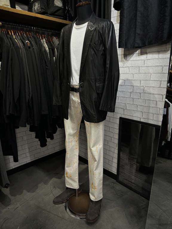 Y’s for men (Yohji Yamamotoのメンズライン) のレザーテーラードジャケットは細見のシルエットが主流だった2000年代終盤のアイテムで、こちらもシンプルかつ上質なシルエット。