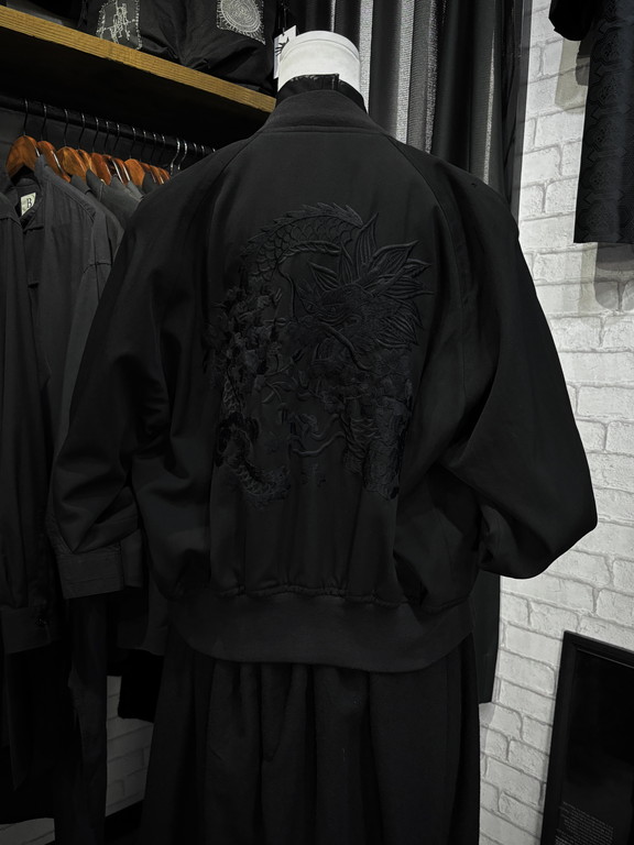 コレクションテーマの “Unfinished”(未完成) の名の通り、一般的に販売されるスーベニアジャケットと違い、地名などが刺繡されておらず未完成。花や富士山、龍の刺繡のみが全て黒で施されたミニマムなデザインとなっております。