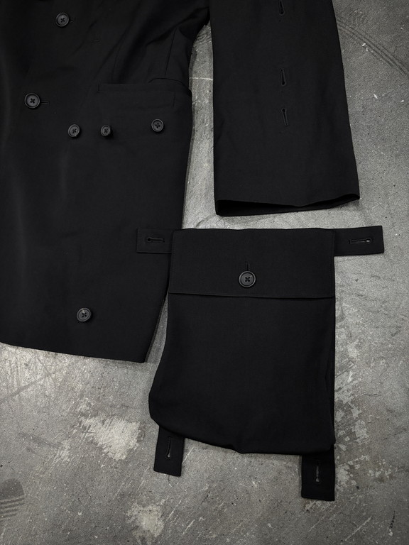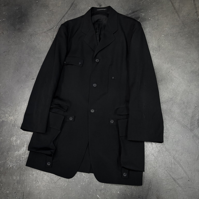 Jacket: Yohji Yamamoto Pour Homme 25SS WOOL GABARDINE SLEEVE BUTTON DETACHABLE POCKET JACKET
