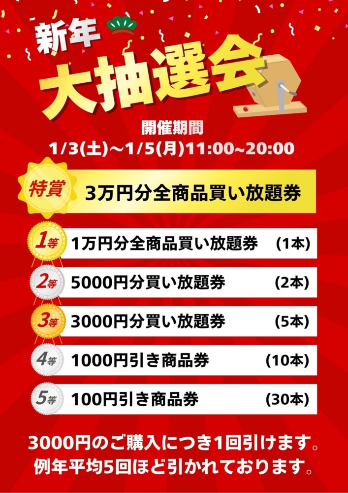 2026年1月3日(土)~1月5日(月)の3日間、初売りを開催いたします!