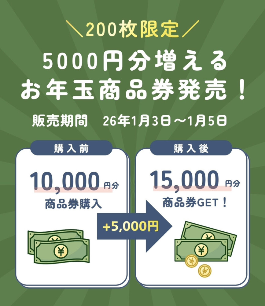 数量限定の超お得なプレミアム商品券は1月5日(月)まで販売しております♪