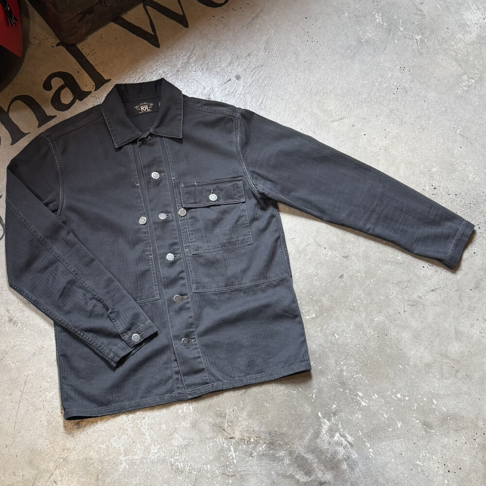 ヘリンボーンツイルにスミクロという組み合わせが、ミリタリーとはまた違う雰囲気を演出する一着です。